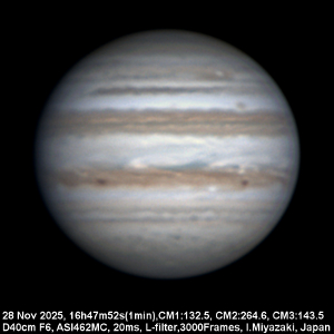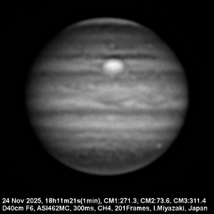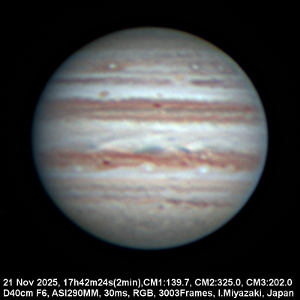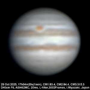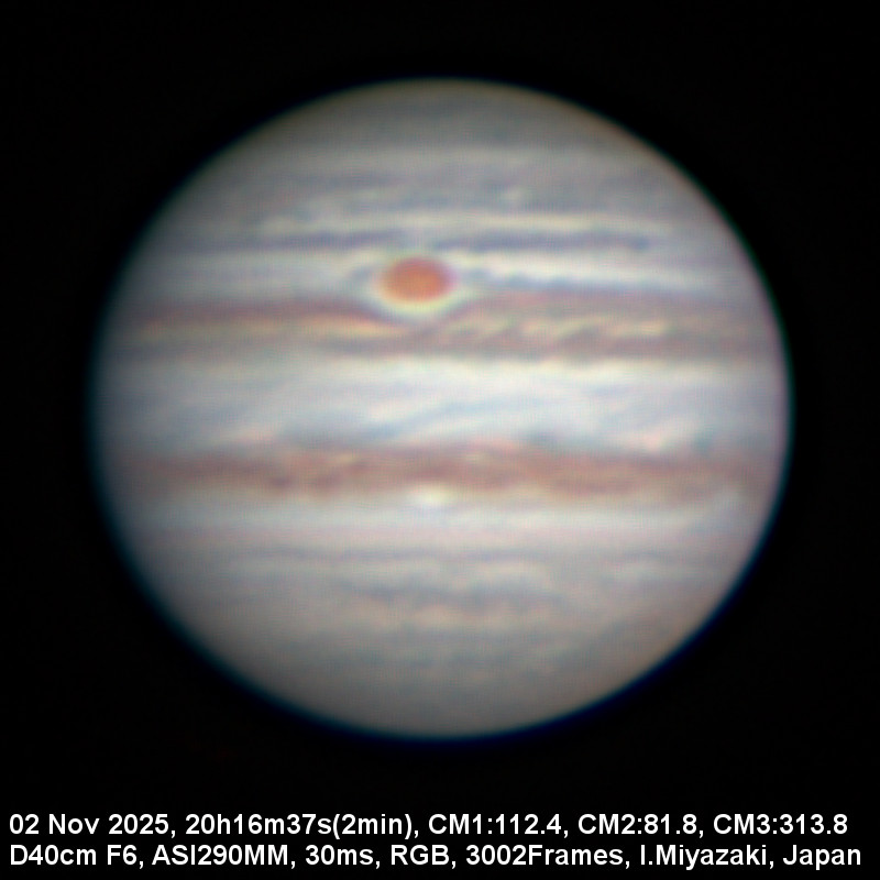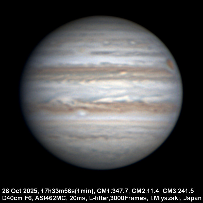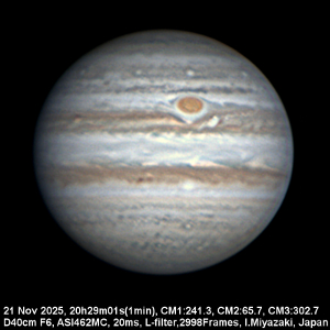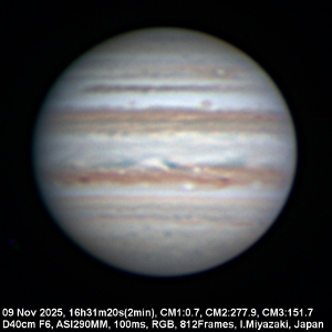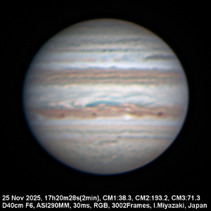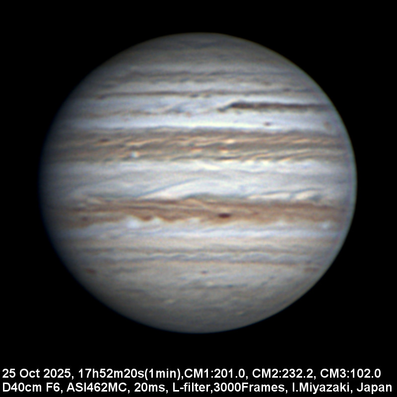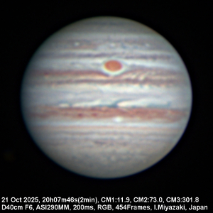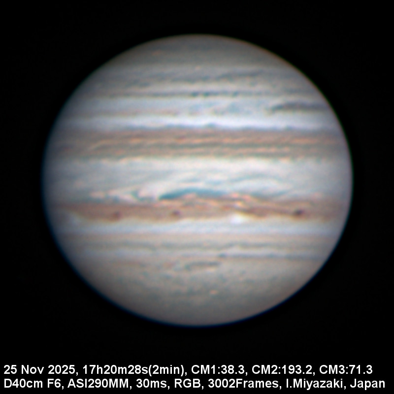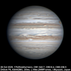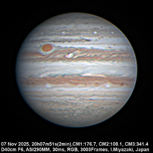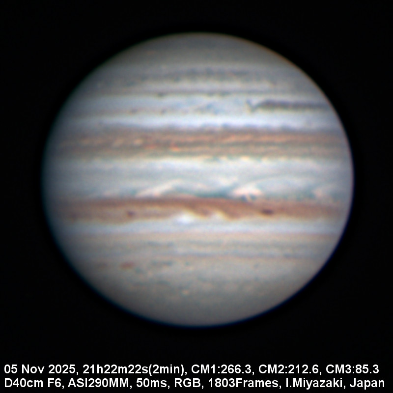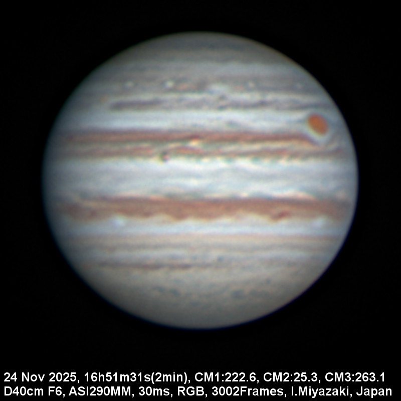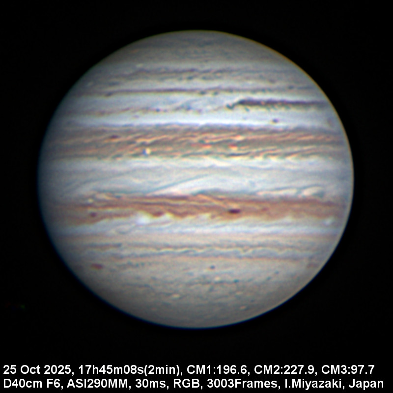 21 July 2025, 20:26:32 UT (2min) I:265.5, II:308.5, III:152.8 |