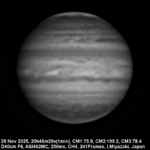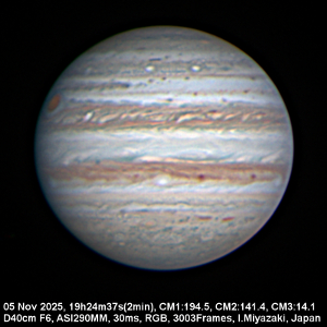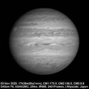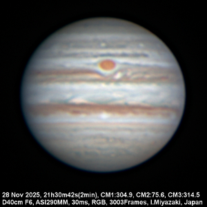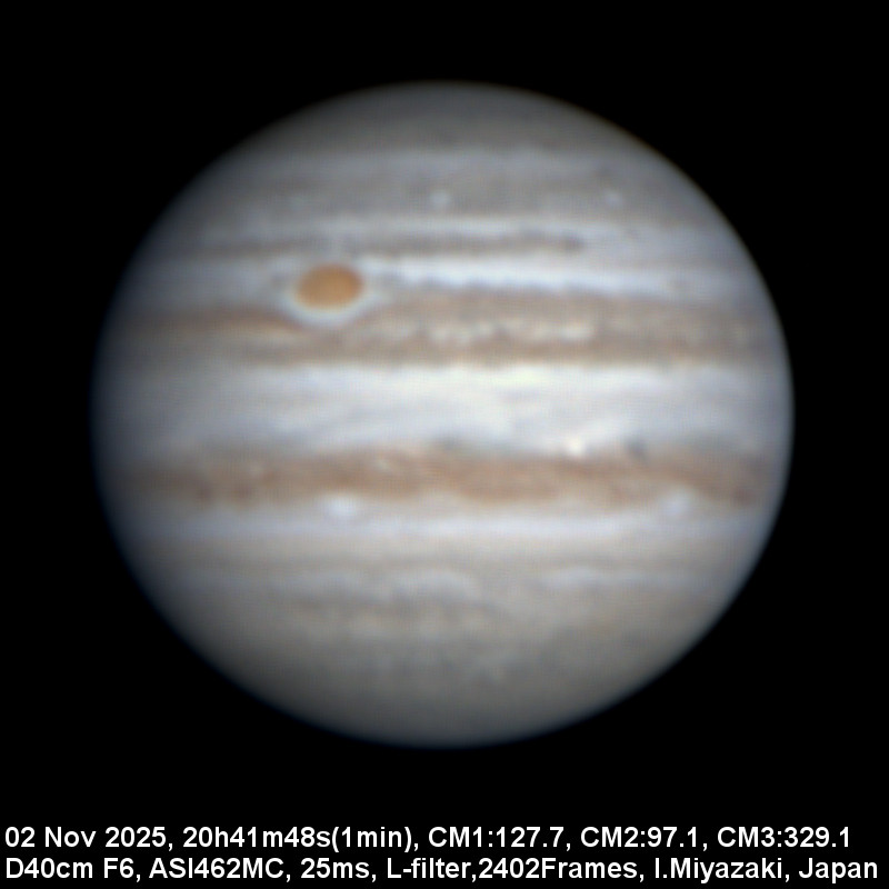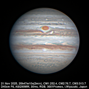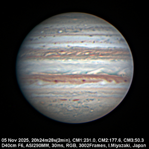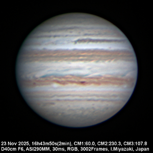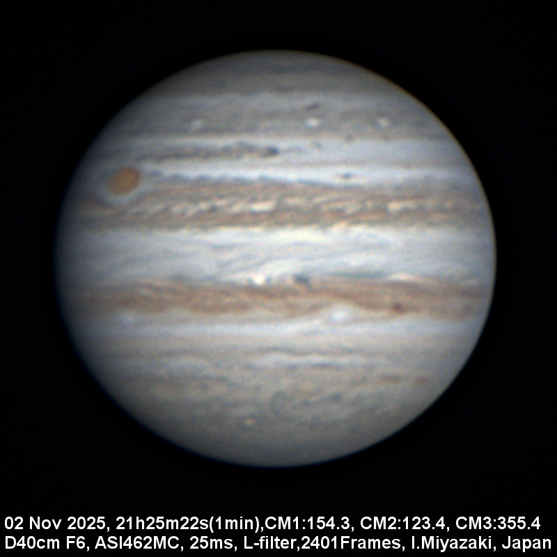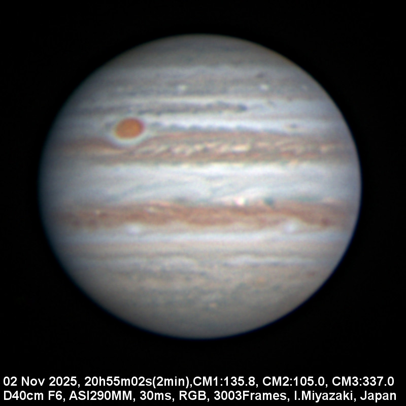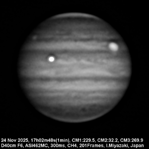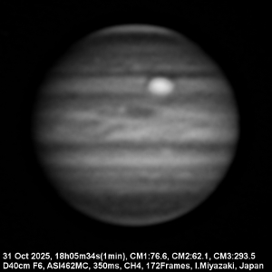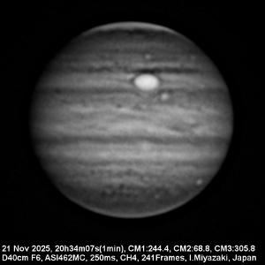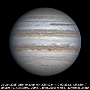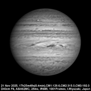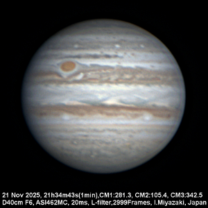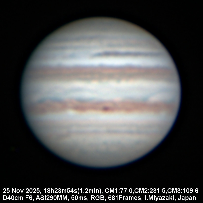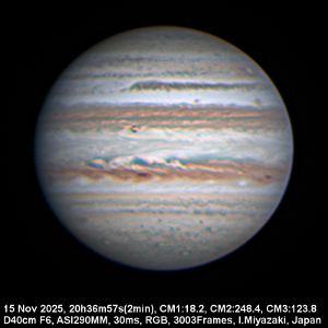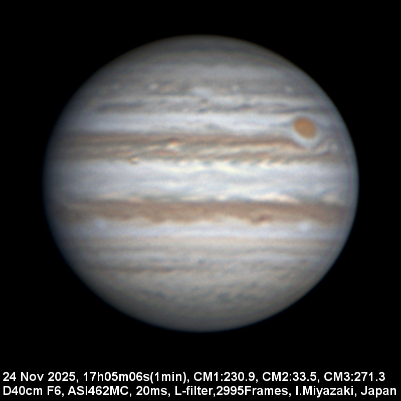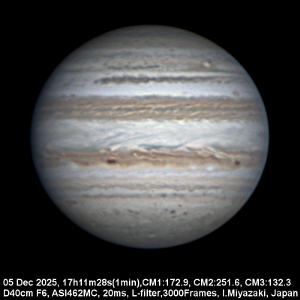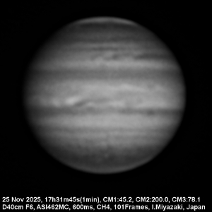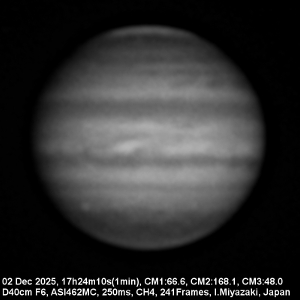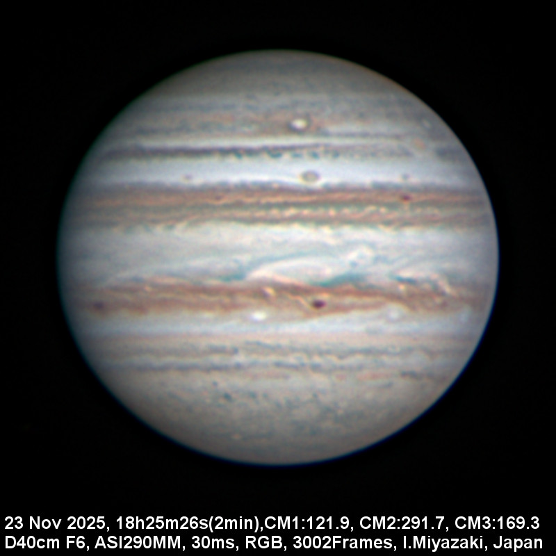 21 July 2025, 20:26:32 UT (2min) I:265.5, II:308.5, III:152.8 |
